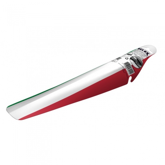 Velox Ass-saver fake board Simply hang the mudguard on the seat saddle rails. This makes it possible to use the mudguard universally and no further fixing material is required. Specifications: Type of bike: children’s bike / mountain bike Suitable for attachment under the saddle Material: plastic Color: green / white / red Weight: 15 grams Length: 34 cm Width: 10 cm Type of mudguard: rear