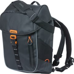 The sporty-looking Miles MIK double bicycle bag from Basil is multifunctional. There are extra pockets on the sides of the bag. Handy for carrying a bottle of drink or an umbrella. In this 34 liter bag you also have enough room for your groceries. This black bicycle bag with orange details is easy to attach thanks to the MIK system. Dimensions of the bag are 34 x 17 x 43 cm (lxwxh). Suitable for various carriers on electric bicycles and city bikes. The plus points at a glance: [+] Thanks to the roll top closure and waterproof tarpaulin, the contents will stay dry! [+] Equipped with handy side pockets for water bottle or umbrella [+] Easy to attach with the MIK system [+] The bag is suitable for various carriers (also e-bikes) Good quality The Basil Miles double pannier has many functional features. Whatever you use it for, there is plenty of room! Will it rain on the way? Then the waterproof tarpaulin ensures that the contents of the bag remain dry. In addition, the bag has a top roll closure with buckle that prevents rain from entering. Close the bag completely with the flap with snap buckle. Optimization Possibilities The reflective details on the bag make you more visible to other road users. You can also attach additional LED lights to the Basil Miles double bicycle bag. Hang universal LED lights (exclusive) on the designated loops of the bag. This way, you’ll cycle safely to your destination, even in the dark or at twilight. If you have a lot of heavy stuff in the bag (max. load 5 kg per single bag). Then you can combine the bag with the Basil Distance Holder – 70178 (sold separately). This holder prevents the bag from getting into the spokes of your bike. Easy attachment with the MIK system Easily click the Basil Miles MIK double pannier onto the carrier of your (electric) bike thanks to the handy MIK system. This way, you can remove your double pannier from your bicycle within one second and take it into the store. This bag includes a pre-assembled MIK adapter plate – 70171 and is compatible with MIK carrier plate – 70170. Before purchasing, please check if your bike has MIK rack plate, if it is not found on your rack then it is available separately. The MIK system fits virtually all pannier racks. For optimal operation, the MIK stick – 70678 (included) is a handy tool in use. Also ideal as a spare part, for when you have lost it or forgotten it. General specifications: Basil code: 18112 Series: Miles Color: black, orange Gender: unisex Material: waterproof tarpaulin Type of closure: rolltop closure with buckle and flap with snap buckle Suitable for: Various carriers also e-bikes Extra side pocket for: water bottle Water resistant: waterproof Handle: yes Warranty: 2 years Capacity Specifications: Dimensions: 34 x 17 x 43 cm (L x W x H) Luggage carrier width: approximately 17 cm Load capacity per bag: 5 kg Total load capacity: 10 kg Panniers capacity: 34 liters Attachment Specifications: Mounting position: luggage carrier Mounting system: MIK system Mounting with: MIK adapter plate – 70171 (included) Compatible with: MIK carrier plate – 70170 (sold separately) Removable: yes in combination with the MIK system Operation: MIK stick – 70678 (included, also sold separately) Specifications additional options: Optional fastener type 1: option for universal LED lighting (not included) Optional mounting type 2: Basil Distance Holder – 70178 (sold separately)