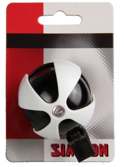 Simson Sport bicycle bell Thanks to this bicycle bell with a sporty look, you can safely go through traffic and other cyclists will always hear you coming. Specifications: Colour: black, white Gender: junior Material: aluminum, plastic Bell diameter: 50 mm Clamp diameter: 22.2 mm Code: 140399