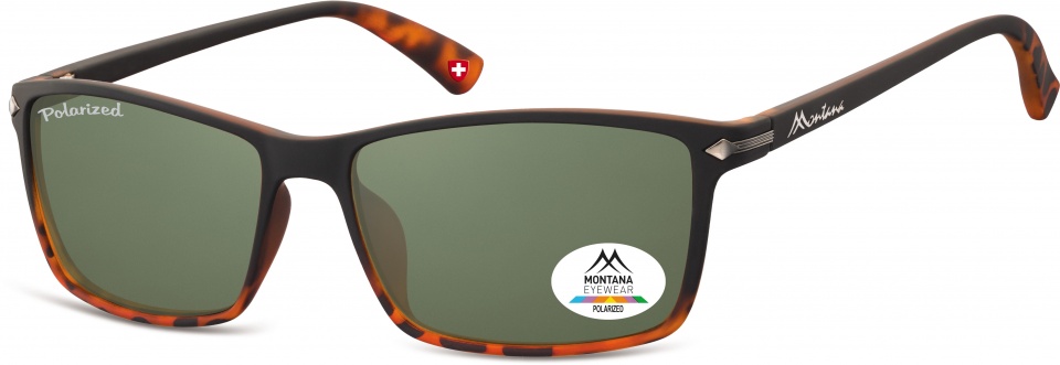 Montana by SGB sunglasses The Montana Collection By SBG MP51 collection for this season is a true ode to timeless style. These glasses have polarized lenses so you have a calm image. The lenses of the glasses have a UV coating and scratch-resistant coating. Specifications: Gender: unisex Frame color: black/brown (turtle) Lens color: green Material: plastic Frame shape: rectangular Frame type: full edge Polarized glasses: yes Scratch-free lenses: yes Content: 1 Sunglasses 1 Cover (soft)
