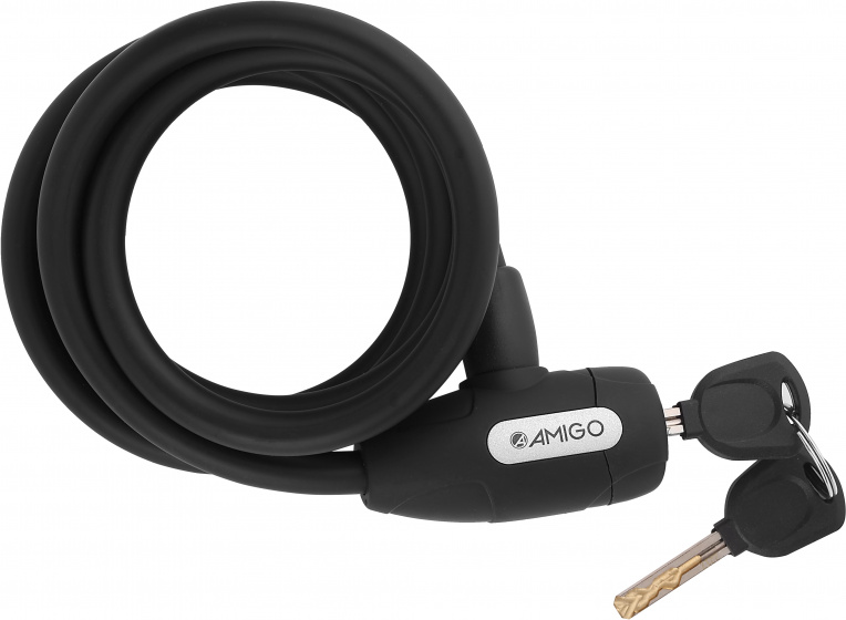AMIGO 1510 chain lock Prevent bicycle theft with the AMIGO Cable 1510! This cable lock is exactly what you need if you want to put your bike safely anywhere. You will always find a pole, fence or other object to which you can attach this lock, so you can attach it to the frame of your bike. You do not have to worry about damaging the frame, because the AMIGO Cable 1510 has a protective layer that ensures that you do not make scratches. Specifications: Colour: black Gender: unisex Material: steel Dimensions: 1500 x 10 mm (L x D) Weight: 300 gram Contents: 1 Bicycle lock 2 Keys