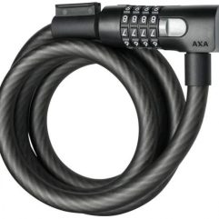 AXA Resolute 8-150 cable lock It AXA Resolute 8-150is a modern cable lock, excellent for short use or additional security of your bike. The Resolute is very user-friendly because you do not have to turn the key to lock the cable. You can easily store it by using the supplied frame holder. This holder is the same for all types of Resolute cables, so that you can also exchange them. The keys of the Resolute are symmetrical, which means that the keys do not have a top or bottom and therefore always fit in the lock. AXA Resolute locks are distinguished by the chic stainless steel details and the luxurious matte coating of the cable. The cylinder is also fitted with an automatic cover that ensures that moisture and dirt do not easily reach the cylinder Specifications: Colour: black Cable material: stainless steel Coating material: polyester Cable diameter: Ø 8 mm Cable length: 150 cm Automatic click-in: yes Locking mechanism: key Key service: yes Number of keys: 2 Cylinder protection: yes Protects against drilling: no Product length: 180 mm Product width: 100 mm Product height: 50 mm Weight: 320 grams Contents: 1 cable AXAlock 2 Keys 1 Frame holder Fixing material