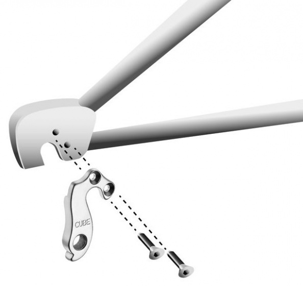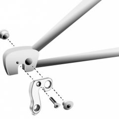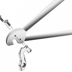 Marwi derailleur hanger GH-126 specifications: Color: Silver Material: Aluminum Overall height: 56.8 mm Bolt Size: M4 x 7 mm Product type: GH-126 Threaded holes in frame. Suitable for the following bike brand: Cannondale Content: 1 Derailleur Hanger 2 Bolts