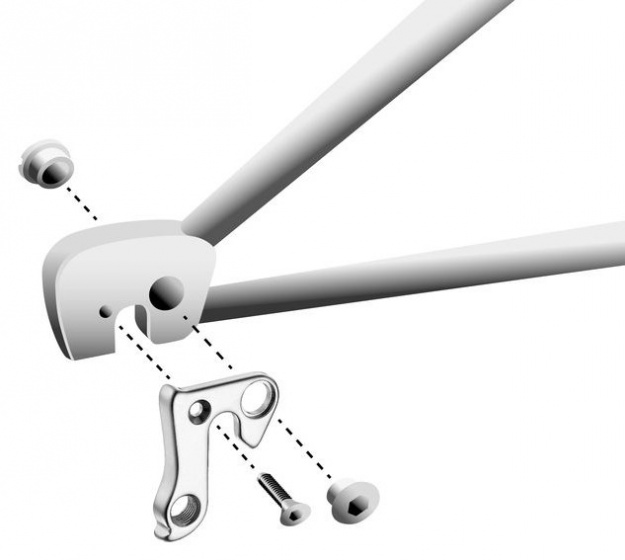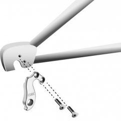 Marwi derailleur hanger GH-128 specifications: Color: Silver Material: Aluminum Overall height: 61.8 mm Size screw package: 7.5 mm x M8 Bolt Size: M4 x 0.7 mm Product Type: GH-128 No screw thread path and in frame. Content: 1 Derailleur Hanger 1 Screws 1 Bout
