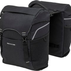 Are you looking for a useful double bicycle bag with a modern twist? Then you’re talking about the Joli Nomi from New Looxs. The round shapes give the bag a distinctive look. Together with the white polka dot pattern, it gives a fun twist to the look of the black bag. The practical side is precisely highlighted by the extra front pocket and the spacious 37 liter capacity (dimensions 38 x 18 x 30 centimeters lxwxh). This pannier bag features fixed mounting thanks to the straps. Suitable for various carriers on electric bikes, and city bikes. The pluses at a glance: [+] Fine features such as reflection and water-repellent material [+] Equipped with handy additional zippered storage compartment [+] One-time mounting thanks to the fixed straps [+] The pannier is suitable for various carriers (including e-bikes) Functionality in a beautiful design Thanks to its large main compartment, the sturdy Joli Nomi double bicycle bag offers a lot of space for transporting goods. This makes the bag excellent for carrying groceries. In addition to the two main compartments, the bag is also equipped with an extra front pocket. This compartment is zippered to safely store small items. Thanks to the plates in the bottom and sides, this beautiful pannier does not lose its shape. The dot pattern is recognizable, making it easier to find your bike in a crowded bike park. The solution for heavy panniers Combine the double bicycle bag with the New Looxs spacer – 48 (sold separately) or the New Looxs spacer – 49 (sold separately). A spacer prevents the bag from hitting the wheel. You insert the spacer into the insertion strips on the back of the bag. Then your well-filled pannier, even when heavily loaded, will always hang neatly straight on the rack. Excellent protection against autumn precipitation It may not always be sunny, but we still like to get around. This is still possible by bicycle! Because a rain shower on the way need not be a problem, as the water-repellent polyester provides protection. In addition, the flap closes tightly over the bag. This prevents water from running into the bag. Be careful during prolonged showers. Tip: always try to put your bike away dry, then the quality remains at its best! For heavier showers, we recommend the New Looxs rain cover for double panniers – 143.330 (sold separately). This will make your bag 100% waterproof. One-time mounting with straps With the pre-mounted straps at New Looxs Joli Nomi you only have to attach the bag once to your rack. Place the pannier on the rack, fasten the straps one by one and you’re done. It can be that simple! For even more stability, you can attach this pannier to the sides with Velcro. General specifications: New Looxs code: 256-181 Series Joli Nomi Color: black Gender: unisex Material: water-repellent polyester Type of closure: Velcro closure Suitable for: various carriers including e-bikes Number of main compartments: 2 Number of additional pockets: 1, with zipper Reflection: reflective piping Quick tie down possible: yes Handle: no Weight: 1,7 kg Capacity Specifications: Dimensions: 38 x 18 x 30 cm (L x W x H) Carrier width: approximately 18 cm Pannier capacity: 37 liters Specifications attachment: Mounting position: luggage carrier Mounting: once with straps Detachable: no Specifications additional options: Optional: New Looxs rain cover – 143.330 (sold separately) Optional: New Looxs spacer – 48 (sold separately) Optional: New Looxs spacer – 49 (sold separately)