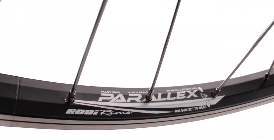 Roland front wheel Paralex28 inch General specifications: Colour: black Inch size: 28 x 1 5/8 x 1 3/8 inches ETRTO size: 37-622 Weight: 1095 grams Type of bike: city bike Specifications spokes: Number of spokes: 36 Thickness: 14G (2.0 mm) Material: steel Specifications rim: Type Paralex ETRTO size: 21C-622 Height: 14.5 mm Width: 21 mm Material: aluminium Valve hole: 8.4 mm Equipped with a rim flange Specifications hub: Axle type: quick release Material: aluminium Axle length: 145 mm Installation width: 100 mm Contents: 1 Front Wheel 1 Quick release