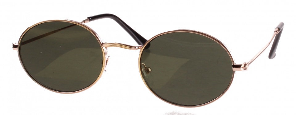 AZ-Eyewear Icons sunglasses With these classic glasses you will always look stylish. The glasses have a thin aluminium frame and small lenses. These glasses have a comfortable fit and with their category 3 the lenses allow 8-18% UV radiation to pass through and are the ideal choice for protection against bright sunlight Specifications: Collection Icons Frame colour: gold Colour glass: green Frame material: aluminium Material lenses: plastic Gender: unisex Frame shape: oval Lens type: normal Category: 3 Dimensions Lens width: 50 mm Lens height: 40 mm Nose bridge: 20 mm Leg length: 140 mm Frame width: 140 mm