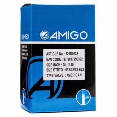 AMIGO Inner Tube This strong inner tube from AMIGO has been crafted and produced with care so that you enjoy the best quality for a very competitive price! Specifications: Inch size: 28 x 2.40 ETRTO size: 57-622/62-622 Valve type: Dunlop valve Valve length: 42 mm Colour: black Material: rubber